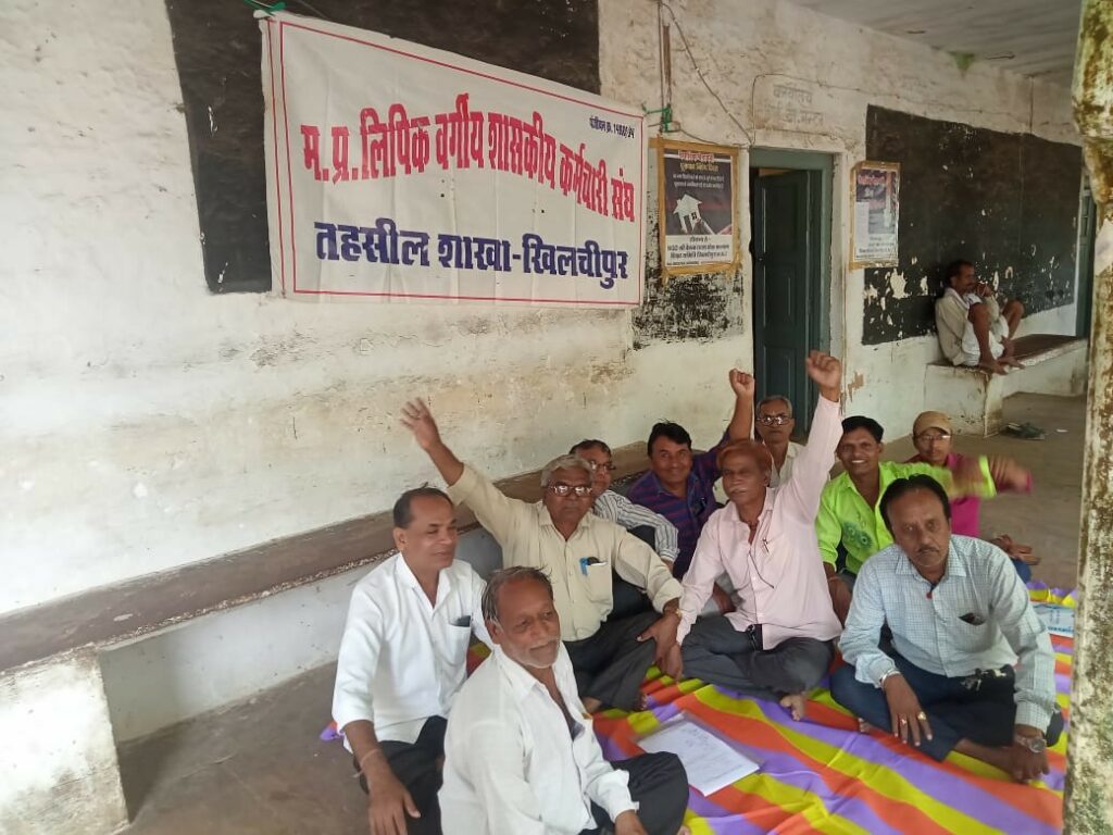 विवेक मालवीय जिला ब्यूरो चीफ राजगढ़ – दिनांक 25/08/2023 को खिलचीपुर में मध्यप्रदेश लिपिक वर्गीय शासकीय कर्मचारी संघ तथा चतुर्थ श्रेणी शासकीय कर्मचारी संघ के आव्हान पर आज एक दिवसीय सामूहिक अवकाश लेकर 39 सूत्रीय न्यायोचित मांगों का ज्ञापन खिलचीपुर तहसीलदार को तहसील कार्यालय में माननीय मुख्यमंत्री महोदय मध्य प्रदेश शासन एवं प्रमुख सचिव सामान्य प्रशासन विभाग मध्य प्रदेश शासन के नाम से सौपा गया ।