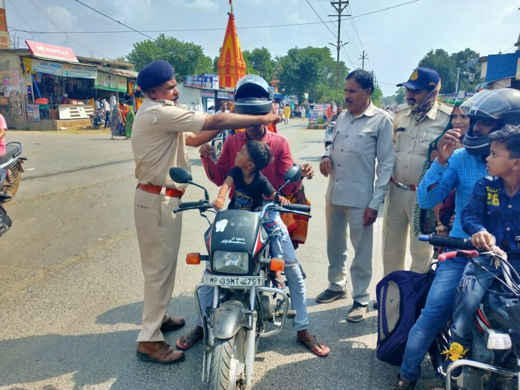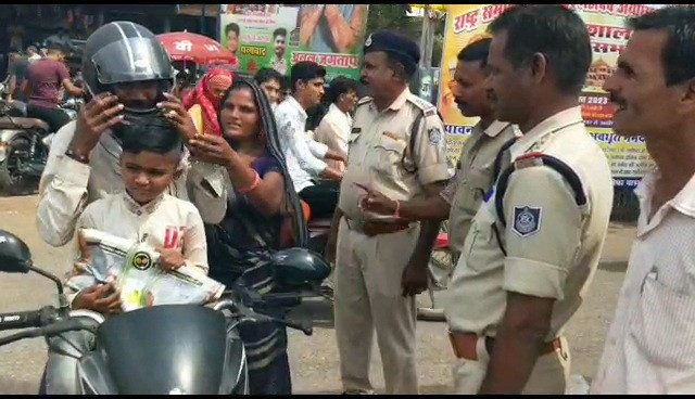 *रक्षाबंधन के अवसर पर पुलिस ने निशुल्क हैलमेट पहनाये*