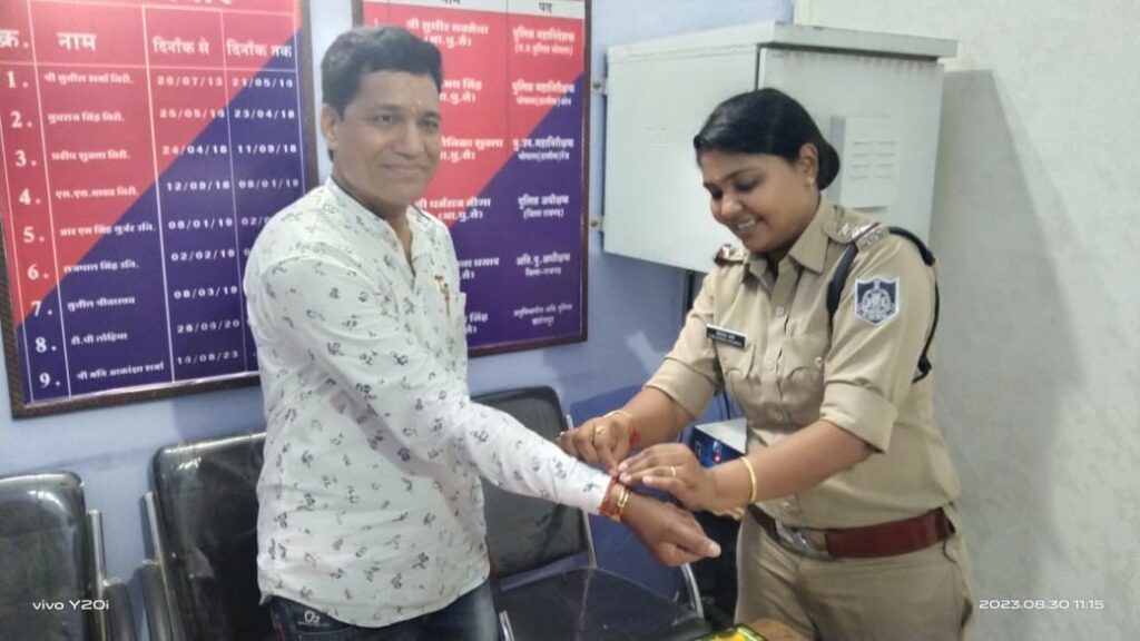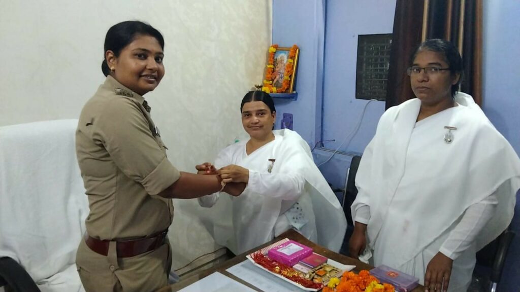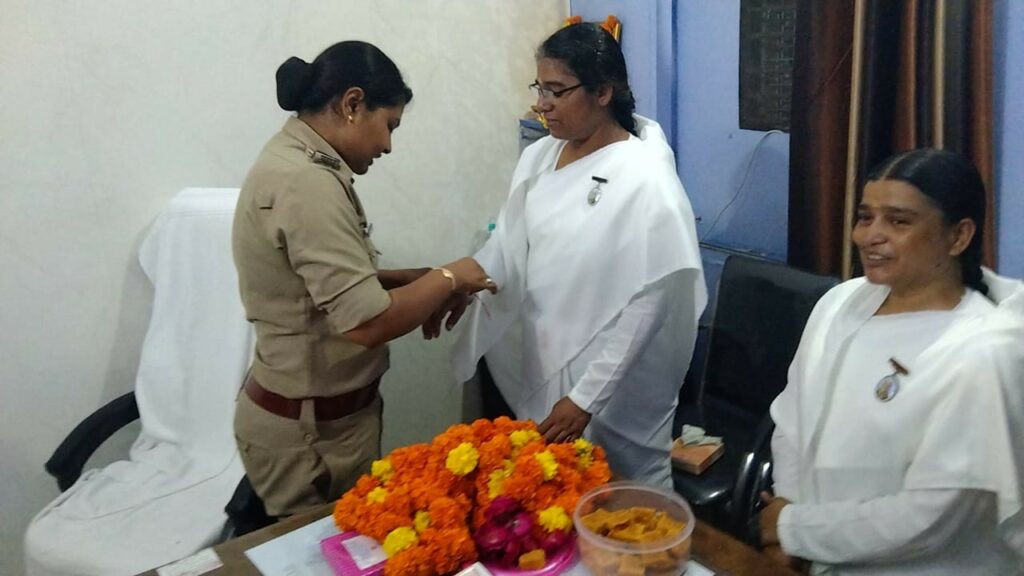 विवेक मालवीय (पचोर )- आज संपूर्ण भारत में भाई बहन का पवित्र पर्व रक्षा बंधन का पर्व बड़े ही सद्भावना और भाई चारे से मनाया जा रहा हे वहीं इस बंधन की डोर पचोर में सांसद रोडमल नागर के हाथों में ब्रह्माकुमारी संस्था की बहनों द्वारा बांधी गई साथ पचोर थाना प्रभारी अकांशा शर्मा सहित थाने में पदस्थ पुलिस जवानों को प्रजापिता ब्रह्माकुमारी ईश्वरीय विश्वविद्यालय की संचालिका वैशाली दीदी ने पुलिस जवानों की कलाई पर रक्षा सूत्र बांधकर इस त्यौहार को उत्साह के साथ मनाया