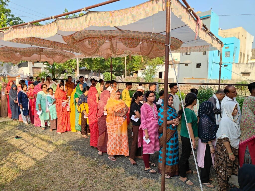 राजगढ़ – लोकसभा निर्वाचन 2024 के अंतर्गत 7 मई को राजगढ लोकसभा निर्वाचन क्षेत्र में मतदाताओं में मतदान के प्रति उत्‍साह नजर आ रहा है। मतदान केन्‍द्रों पर मतदाता कतार में लग कर मतदान कर रहे हैं।