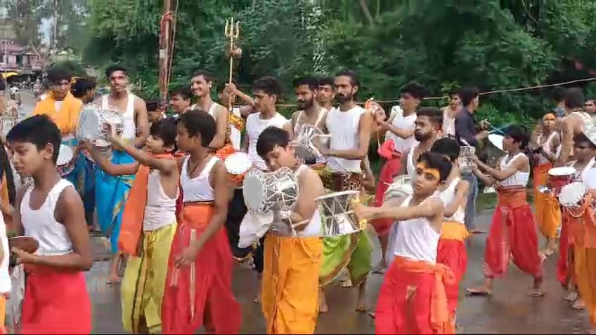 खिलचीपुर नगर में सावन के दूसरे सोमवार को शिव भक्तों ने बाबा महांकाल की भव्य शाही सवारी ढोल धमाको के साथ नगर में निकाली