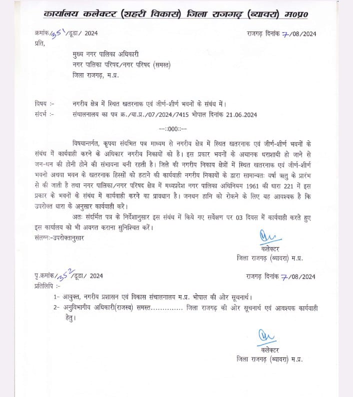 शासकीय व निजी जर्जर भवनों को तत्काल डिस्मेंटल किए जाने के दिए निर्देश